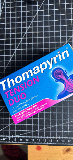 Thomapyrin TENSION DUO ist ein rezeptfreies Schmerzmittel zur kurzfristigen Behandlung akuter, mäßig starker Schmerzen (insbesondere Spannungskopfschmerz). Die TENSION DUO‑Formulierung kombiniert Ibuprofen 400 mg mit Coffein 100 mg pro Filmtablette. (drugfuture.com)