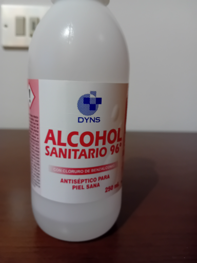 DYNS Alcohol Sanitario 96° es un antiséptico tópico en formato de botellas de 250 ml destinado a la desinfección de piel sana (preparación para inyecciones, limpieza de pequeñas heridas y uso como desinfectante general). La fórmula indicada en varios distribuidores contiene etanol 96º con una pequeña adición de cloruro de benzalconio como coadyuvante. (idealfarma.es)