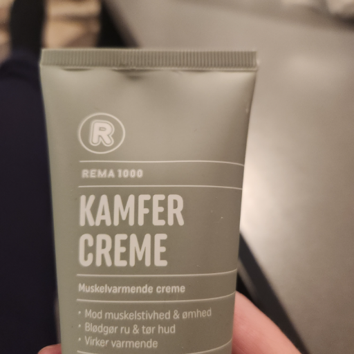 REMA 1000 Kamfer Creme (100 ml) — a camphor-based muscle-warming topical cream sold under REMA 1000’s private label. The product appears in Danish retail product listings with EAN 5705830354563 attributed to REMA 1000. (sigmaboy.dk)