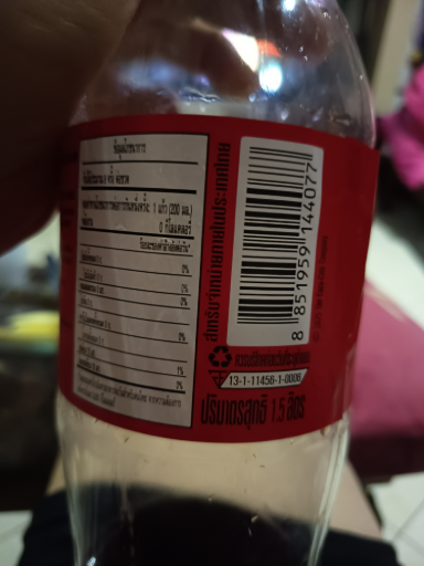 This image shows a 1.5‑litre PET bottle of Coca‑Cola sold for the Thai market (the label includes Thai-language text and the net volume line reading “ปริมาตรสุทธิ 1.5 ลิตร”), indicating the local SKU for Coca‑Cola in Thailand. (th.mcgrocer.com)