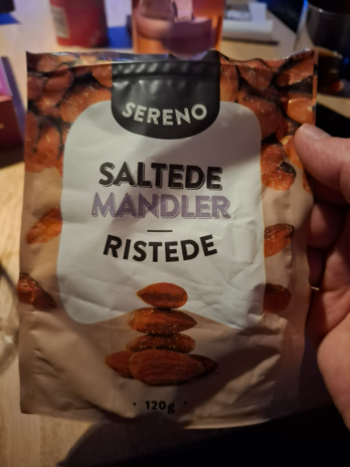 Sereno Saltede Mandler (ristede) er en dansk-markedsført snack — ristede og saltede mandler i 120 g pose — solgt under mærket Sereno, typisk fundet i discountsupermarkedet Netto i Danmark. (sigmaboy.dk)