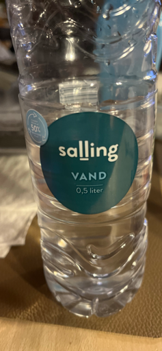 Salling vand (0,5 liter) is a private‑label bottled drinking water sold under the Salling brand. The label text ("Salling" and "VAND 0,5 liter") and the styling match Salling Group’s private‑label range used in their Danish supermarkets.