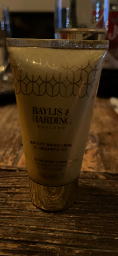 Baylis & Harding Sweet Mandarin & Grapefruit Hand & Nail Cream is a 50 ml travel-style hand cream presented in the brand's signature cream, black and gold geometric tube design. The product is marketed as part of Baylis & Harding’s Sweet Mandarin & Grapefruit collection and described on the brand's product pages as the iconic Sweet Mandarin & Grapefruit hand cream. (baylisandharding.com)