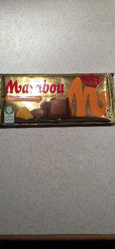 Billedet viser en Marabou chokoladeplade med appelsin-/moussé-variant (ofte markedsført som 'Apelsin' / 'Apelsinkrokant' / 'Apelsinmousse' i Marabous sortiment). Marabou sælger flere appelsin-smagsvarianter af deres mælkchokolade, og emballagens guld- og orangefarver samt det store "M" er karakteristisk for Marabou-tabletter. (nordicfinefoods.com)