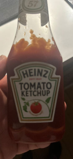 Identification and packaging: The photo shows the classic Heinz Tomato Ketchup glass bottle (Heinz keystone label and the round “57” on the neck/cap), a globally recognized ketchup SKU.