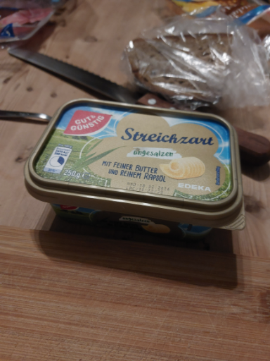 GUT&GÜNSTIG is a private label brand owned by EDEKA, a prominent retail group in Germany. The brand focuses on providing affordable food products, including spreads like Streichzart, which is a spreadable butter alternative featuring a blend of fine butter and rapeseed oil. Its mission is to offer quality at a lower price point, making it popular among budget-conscious consumers. The product is typically manufactured in multiple countries, reflecting EDEKA's commitment to quality and efficiency.