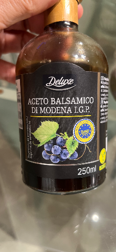Deluxe Aceto Balsamico di Modena I.G.P. is a balsamic vinegar produced under the 'Deluxe' brand, which is owned by Lidl Schweiz AG, a subsidiary of the German multinational retailer Lidl Stiftung & Co. KG. The product is primarily manufactured in Italy, known for its traditional production methods of balsamic vinegar, but it may also be produced in other locations. The 'Deluxe' brand is exclusive to Lidl, offering premium products to its customers.