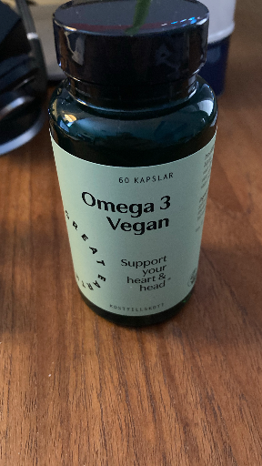 Stig Bengmark's Omega-3 supplement is a vegan dietary supplement produced in Sweden by Super Synbiotics. The product is based on algal oil from the microalga Schizochytrium, which is naturally rich in DHA. Each capsule contains 660 mg of algae oil, providing 260 mg of Omega-3 fatty acids, including 259 mg of DHA and 1 mg of EPA. The supplement is designed to support cardiovascular health, brain function, and vision. The packaging emphasizes its vegan and plant-based composition, appealing to consumers seeking non-animal-derived Omega-3 sources.