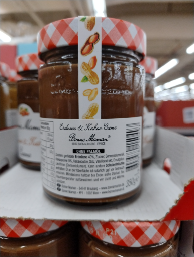 Bonne Maman is a well-known brand originating from France, renowned for its high-quality preserves and spreads. The specific product, Erdnuss & Kakao Crème, is a delightful peanut and cocoa spread, emphasizing the brand's dedication to using fine ingredients without palm oil. Though primarily manufactured in France, Bonne Maman products may also be produced in other locations to meet global demand. The company behind the brand, Andros, has established a strong reputation over the years, making Bonne Maman a trusted name in kitchens worldwide.