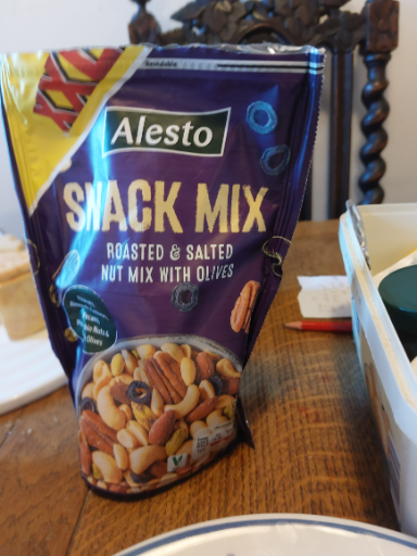 Alesto is a brand owned by Lidl, a prominent German discount supermarket chain. The Snack Mix labeled as 'Roasted & Salted Nut Mix with Olives' features a blend of various nuts and olives, making it a savory snack option. Alesto products are manufactured in multiple countries, maintaining Lidl's commitment to providing high-quality food items at competitive prices. The brand reflects Lidl's strategy of offering private label products that cater to diverse consumer preferences.