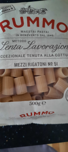 RUMMO is a renowned Italian pasta brand established in 1846, known for its dedication to quality and traditional production methods. The company employs the 'Lenta Lavorazione' (Slow Processing) method, which involves longer kneading times to ensure optimal texture and flavor in their pasta products. This technique has been perfected over generations, resulting in pasta that maintains its firmness and absorbs sauces effectively. RUMMO offers a diverse range of pasta shapes, including classics like Spaghetti, Penne Rigate, and Fusilli, catering to various culinary preferences. Their commitment to quality is evident in their use of high-quality durum wheat semolina and pure water from the Sannio Valley. The brand's packaging reflects its heritage, often featuring rustic designs that emphasize its Italian roots and artisanal approach to pasta making.
