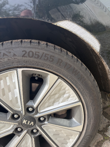 The image shows a tire associated with the Kia brand, with the size specification of 205/55 R 17. Kia Corporation, founded in South Korea, is an automotive manufacturer that produces vehicles known for their reliability and value. Kia is a subsidiary of the Hyundai Motor Company, which is also based in South Korea. Tires for Kia vehicles are often manufactured in multiple countries to meet global supply demands.
