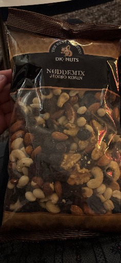 DK NUTS offers a variety of nut mixes, including the Jumbo NøddeMix, which contains an assortment of nuts. This product reflects a blend of flavors and is designed for snacking. The brand is rooted in Denmark, emphasizing quality and flavor in their nut selections. The specific manufacturing country may vary, indicating a global sourcing approach for their ingredients.