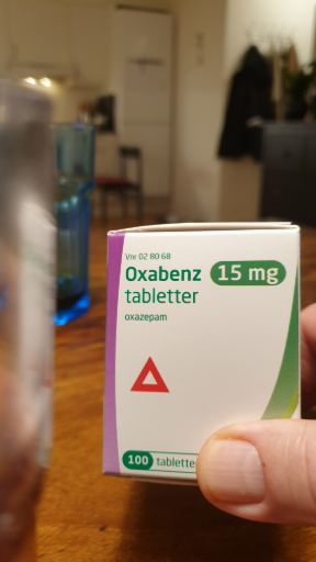 Oxabenz is a medication containing oxazepam, primarily used for the treatment of anxiety. The product appears to originate from Denmark, where the medication might have been developed or is commonly distributed. However, specific brand information and ultimate ownership details aren't clearly stated on the packaging, and production may occur in multiple countries depending on pharmaceutical practices and regulations.