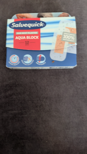 Salvequick is a well-known brand that specializes in adhesive plasters and wound care products. Originally founded in Denmark, the brand has gained recognition across several countries for its effective solutions in protecting cuts and abrasions. The Aqua Block Plaster is designed to provide waterproof protection, making it suitable for use in wet conditions. The brand is now under the ownership of Essity AB, a leading global company in the hygiene and health sector, headquartered in Sweden. Despite its transition into a larger corporate structure, Salvequick continues to be recognized for its innovative products in wound care.