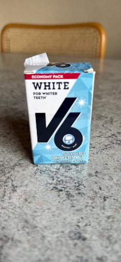 V6 White Peppermint Chewing Gum is a sugar-free gum designed to help reduce tooth discoloration and neutralize plaque acids. Manufactured in Poland, it is produced by V6 AB, a Swedish company known for its dental care-focused chewing gum products. The gum contains sweeteners like sorbitol, xylitol, and aspartame, along with sodium stearate, which aids in whitening teeth. The product is available in various markets, including Sweden, Switzerland, and the United States, reflecting its international distribution. V6 AB continues to operate as an independent entity, focusing on oral health solutions through its range of chewing gum products.