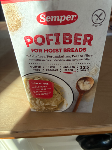 Semper Pofiber is a dietary fiber product specifically designed for moist breads, made from potato fiber. The brand Semper originated in Sweden and is known for offering gluten-free and low-FODMAP foods, catering to those with dietary restrictions. As a part of the extensive Pillsbury Company portfolio, which is a subsidiary of General Mills based in the United States, Semper benefits from a vast distribution network while maintaining its unique product offerings tailored to Scandinavian culinary preferences.