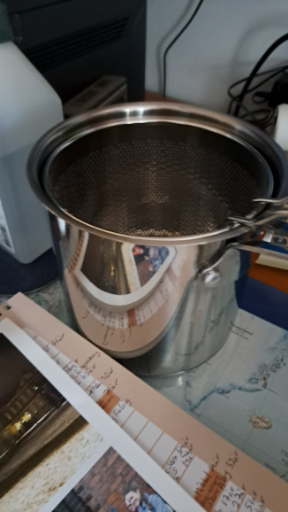 The uploaded image appears to be a stainless steel strainer pot, a kitchenware item used for draining liquids from foods such as pasta or vegetables. These products are commonly manufactured in various countries, including China, India, and Brazil, depending on the brand and model. Without specific branding or labeling visible in the image, it's challenging to determine the exact brand, country of origin, or ownership details. For precise information, please provide a clearer image showing the product's brand name, logo, or any distinguishing marks.