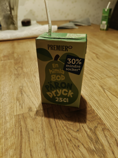 Premier is a Swedish brand known for its fruit juices and drinks. The 'En himla god pärondryck' indicates a pear drink, and the packaging shows it contains 30% less sugar than standard offerings. Premier Foods, the original company, is recognized for producing a variety of beverage products. The ultimate ownership of the brand now lies with Bühler Group, a prominent global player in the food processing industry, headquartered in Switzerland. The manufacturing of this product is conducted in multiple countries to meet product demand efficiently.