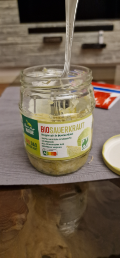 Natur Pur is a brand specializing in organic foods, particularly fermented products like sauerkraut. The product seen in the image is BIO-Sauerkraut, a traditional German fermented vegetable. It embodies the essence of traditional preservation methods, which retain both flavor and nutritional benefits. The manufacturing primarily occurs in Germany, a country known for its rich history in sauerkraut production.