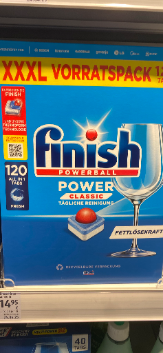 Finish Powerball Classic is a prominent brand of dishwasher tablets from Reckitt Benckiser, originally founded in Germany. The product is designed for effective cleaning and includes technologies to enhance the washing process. Manufactured in multiple countries, it emphasizes efficiency and convenience for households. Reckitt Benckiser, the ultimate owner of the Finish brand, is headquartered in the United Kingdom and operates globally, providing a diverse range of health and hygiene products. The brand has gained a reputation for its innovative cleaning solutions.
