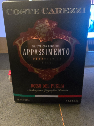 Coste Carezzi Appassimento is a red wine from the Puglia region of Italy, known for its rich flavors and traditional winemaking methods. The term 'Appassimento' refers to a technique where grapes are dried before fermentation, enhancing the wine's sweetness and complexity. This particular product showcases the unique wine profile of the area, celebrated for its deep flavors and robust character. While details on the specific company behind the brand are not available, the wine is produced in Italy, a country renowned for its centuries-old wine culture.