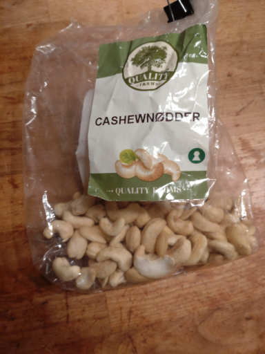 Quality Farm is a brand that focuses on providing high-quality food products. The packaging indicates that the item is cashew nuts, known for their rich flavor and crunchy texture. Often packaged in various forms, nuts like these are commonly sourced from different countries, making it probable that they are produced in multiple locations to ensure quality and supply. The brand appears to have a Danish origin, emphasizing local quality, while specific ultimate ownership and manufacturing details are not readily available.