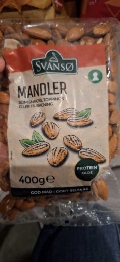Svansø Mandler almonds are a product of Good Food Group A/S, a Danish company known for its organic and plant-based food offerings. The almonds are sourced from multiple countries, ensuring a diverse supply chain. These almonds are rich in healthy unsaturated fatty acids, vitamins B and E, iron, calcium, and magnesium, making them a nutritious snack. They are often used in cakes, confectionery, and as a topping for salads. The product is manufactured in multiple countries, reflecting a global sourcing strategy.