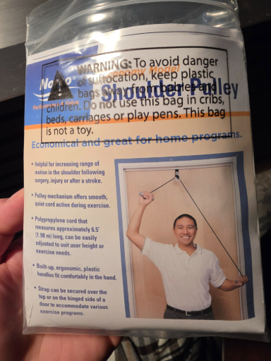 The AliMed Economy Shoulder Pulley System is a medical device designed to assist individuals in maintaining or rebuilding shoulder range of motion (ROM) and muscle strength. This over-the-door system features dual pulleys and is intended for use in physical therapy and rehabilitation settings. AliMed, Inc., the manufacturer, is a U.S.-based company specializing in medical supplies and equipment for healthcare professionals and institutions. The product is manufactured in multiple countries, reflecting AliMed's global production capabilities.