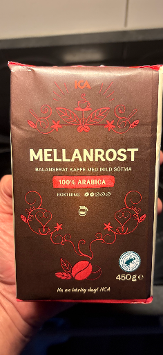 ICA Mellanrost is a coffee brand produced by ICA, a prominent grocery chain in Sweden. The term 'Mellanrost' translates to 'medium roast' in English, signifying a balanced coffee flavor with mild sweetness. The coffee beans used are 100% Arabica, known for their superior quality and flavor. ICA, originally founded in Sweden, has grown to be a well-recognized brand across the Nordic countries, with a focus on quality products. The coffee is typically produced in multiple countries, given the global sourcing of coffee beans.