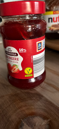 Grandessa is a brand associated with ALDI, a well-known supermarket chain in Germany, specializing in economical food products, including jams and spreads. The Erdbeere Fruchtaufstrich, or strawberry fruit spread, features 50% fruit content, catering to consumers looking for affordable but quality jam options. The product is primarily manufactured in multiple countries, reflecting ALDI's extensive sourcing network, enabling them to offer products at competitive prices while maintaining quality standards.