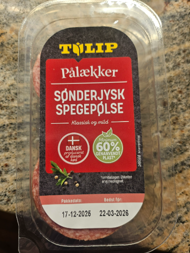 TULIP is a well-known Danish brand that specializes in meat products, including cold cuts and deli meats. The Sønderjysk Spegepølse is a classic and mild variety of salami, reflecting traditional Danish flavors. The product emphasizes its Danish heritage with a commitment to gluten-free options and environmental sustainability, evidenced by the packaging announcement of using a minimum of 60% recycled plastic. TULIP's origins date back to Denmark, and it is primarily manufactured there, contributing to the local food industry while also having a presence in other countries. Currently, TULIP is owned by the Porkka Group, a Finnish company that seeks to innovate within the meat production industry.