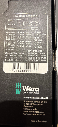Wera is a renowned brand known for its innovative tool solutions, particularly in screwdriving and communication trades. The Kraftform Kompakt 62 tool set exemplifies Wera's commitment to quality, providing a comprehensive selection of tools designed for efficiency and ergonomic handling. Made in the Czech Republic, this set combines precision engineering with robust materials, ensuring longevity and user satisfaction. Wera, established in Germany, remains focused on superior craftsmanship and cutting-edge design, maintaining its status as a leader in the tool industry.