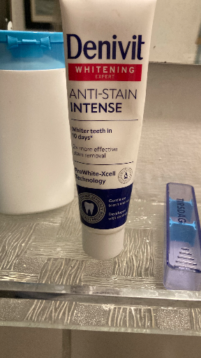 Denivit Whitening Anti-Stain Intense Toothpaste is a personal care product designed to effectively remove stains caused by food, drink, and tobacco, restoring the natural whiteness of teeth. Manufactured by Smile Cosmetics GmbH, a German company specializing in oral care products, this toothpaste is available in various countries, including Denmark. The brand emphasizes advanced whitening technologies and gentle formulations suitable for daily use. As of 2026, Smile Cosmetics GmbH continues to own and operate the Denivit brand, with no known subsidiaries managing the brand locally.