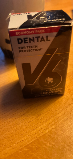 V6 Dental is a Danish brand known for its sugar-free chewing gum products that aid in neutralizing plaque acids and promoting dental health. The 'V6 Dental lakrids tyggegummi' is a sugar-free licorice-flavored chewing gum that comes in a 70g package, containing approximately 50 pieces. The gum is sweetened with xylitol and is designed to be chewed for at least 20 minutes after meals to help reduce plaque formation. The product is primarily manufactured in Poland, with some production also taking place in other locations. V6 Dental is a Danish company specializing in dental care products, and it remains under Danish ownership.