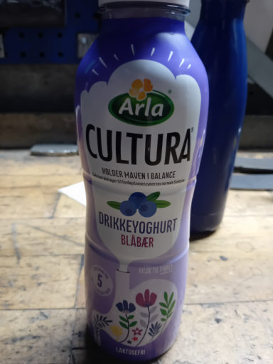 Cultura is a brand of dairy products owned by Arla Foods, a major dairy cooperative founded in Denmark. The product shown is a blueberry drinkable yogurt, known for its lactose-free formulation. Arla Foods operates in multiple countries, sourcing and manufacturing its products across various locations to meet consumer demand. As a cooperative, Arla is owned by dairy farmers and emphasizes sustainability and quality in its product offerings.
