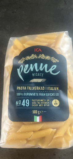 ICA Penne Rigate is a type of pasta produced by ICA, a well-established brand in Sweden. The pasta is primarily made in Italy, known for its high-quality durum wheat, which is evident in the product's label. ICA Gruppen AB, the company behind the ICA brand, has a significant presence in the Nordic market, specializing in grocery products. The brand emphasizes the use of fine ingredients and traditional manufacturing methods to deliver authentic pasta experiences.
