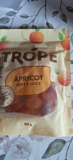 TROPÉ is a brand known for its fruit products, including dried fruits like apricots. The specific origin of the brand and its parent company isn't detailed on the packaging. The product, as indicated, is primarily categorized as dried fruit, which is often enjoyed for its convenience and sweet, chewy texture. Dried fruits are commonly processed in multiple countries depending on the sourcing of the fruit and manufacturing capabilities.
