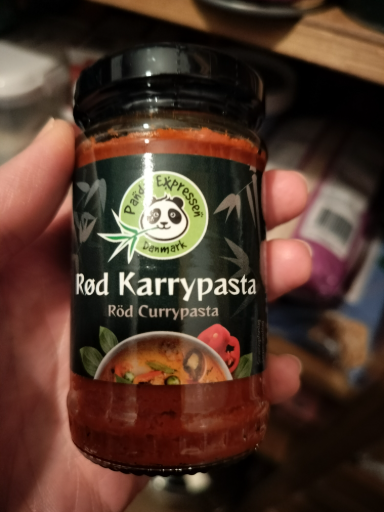 Panda Expression is a brand based in Denmark, known for its culinary products, especially focusing on Asian cuisine. The Rød Karrypasta, or Red Curry Paste, is a flavorful cooking ingredient that allows users to prepare traditional dishes with ease. The product packaging prominently displays its name, along with a panda logo, suggesting a friendly and approachable brand ethos.