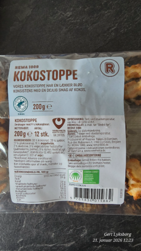 Rema 1000 is a well-known supermarket chain based in Norway, offering a wide range of products, including their own private label items such as Kokostoppe. These coconut-flavored snacks are crafted to deliver a delightful taste of coconut and are typically produced in multiple countries to meet demand. The brand, originally founded in Norway, continues to thrive under the Reitan Group, which also oversees various other retail chains across Scandinavia. Rema 1000 has become synonymous with quality and value for consumers looking for affordable food options.