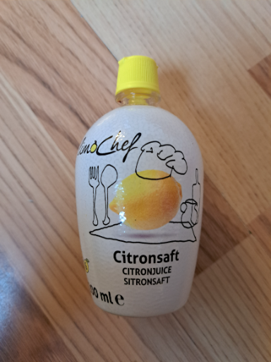 Chef is a brand associated with food products, including lemon juice. The product packaging indicates it contains lemon juice, and such products are typically produced in various countries depending on the sourcing of raw materials. The brand's origin is associated with Denmark, but specific ownership details are not available.