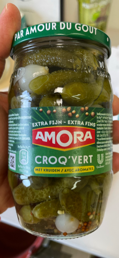 Amora is a renowned French brand known for its condiments and pickled products, particularly favored in various culinary traditions. The Croq'Vert variety features finely sourced pickles infused with spices, catering to both local and international taste preferences. The product is manufactured in multiple countries, reflecting Amora's expansive production capabilities within the food industry. Originally founded in France, Amora has become a prominent name in the market, now under the ownership of the Kraft Heinz Company, which provides it with global reach and distribution capabilities. The brand's commitment to quality is evident in its use of fine ingredients, making it a popular choice among consumers looking for flavorful condiments.