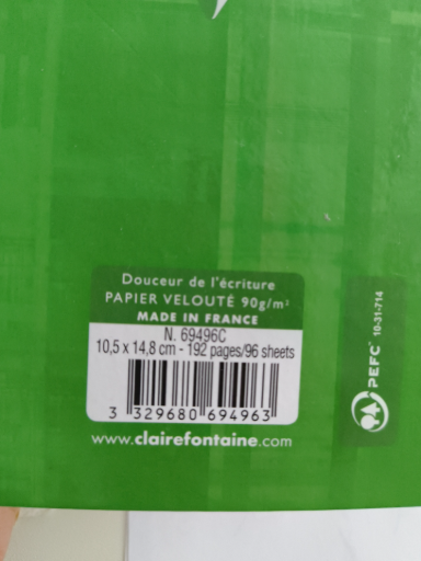Clairefontaine is a renowned French brand that specializes in high-quality paper products, known for their excellent writing qualities. Their Velou Mémo Paper, characterized by its soft texture and 90g/m² weight, is designed for a smooth writing experience. The product is manufactured in France, adhering to local quality standards. Groupe Clairefontaine, which owns the brand, has a long-standing tradition of producing stationery and has earned a reputation for quality and reliability in the market.