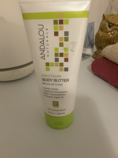 Andalou Naturals Kukui Cocoa Nourishing Body Butter is a personal care product designed to nourish and hydrate dry skin. Manufactured primarily in the USA, the brand is known for its commitment to natural and organic ingredients, offering a range of skincare and body care products. The company operates as a privately held entity, focusing on providing effective and eco-friendly personal care solutions. The product is available in various retail outlets and online platforms, catering to consumers seeking natural skincare options.