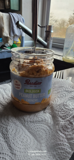 Paradiso is a brand that offers a range of organic food products, including this crunchy peanut butter. Originating in Denmark, it is crafted to provide a rich and wholesome nutty flavor, catering to consumers looking for natural and high-quality spreads. Each jar represents a commitment to organic ingredients and sustainable practices, aligning with the healthy lifestyle choices of many consumers.