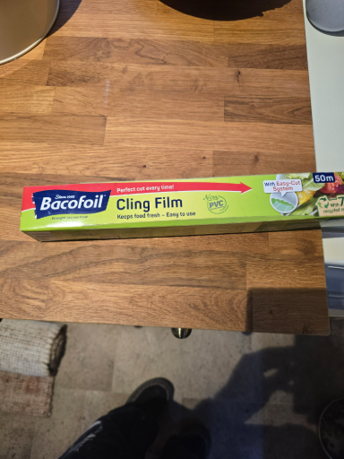 Bacofoil Non-PVC Cling Film is a food storage wrap designed to keep food fresh by preventing drying and odor transfer. It features a unique Easy-Cut System with a curved blade for precise cutting and a film start finder for easy dispensing. Made from non-PVC materials, it is recyclable and produced using recycled resources, making it an environmentally friendly choice. The product is manufactured in multiple countries and is owned by the Melitta Group, a German company known for its coffee and household products. Bacofoil Limited, based in the United Kingdom, originally developed the brand, which is now part of the Melitta Group's portfolio.