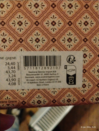 Sisterne Grene is a Danish brand known for its diverse range of craft supplies, home decor items, and related products. Founded in Denmark, the brand emphasizes creativity and sustainability in its offerings. The specific item in the image appears to be part of their craft supplies range, produced in Finland, indicating a commitment to quality manufacturing. The brand operates under Sisterne Grene Import A/S, which manages imports for various regions, while SGI Northern England Ltd serves as the ultimate owner in the UK market, ensuring the products are widely available to consumers.