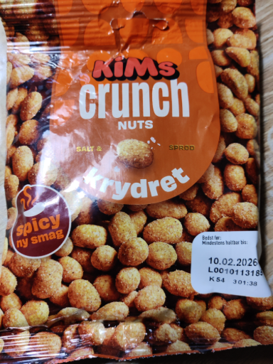 KIMS is a recognized brand in Denmark known for its crunchy snacks, particularly their range of nuts and chips. Originally founded in Denmark, KIMS has expanded its reach and is now part of the Intersnack Group, which operates extensively across Europe. The product in question, KIMS crunch nuts, is a spicy snack that reflects the brand's emphasis on flavor and quality. The product is manufactured in multiple countries, ensuring a diverse production network to meet consumer demands.