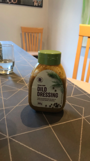 Bähncke Dild Dressing is a Danish condiment known for its mild and sweet mustard flavor, making it a popular accompaniment to smoked fish, especially gravlax and smoked salmon. The brand Bähncke originates from Denmark, where it has been producing various condiments and sauces. In 2026, Bähncke is owned by Orkla ASA, a Norwegian conglomerate specializing in branded consumer goods and financial investments, headquartered in Oslo, Norway. Orkla ASA operates through its subsidiary, Orkla Danmark A/S, which manages the Bähncke brand in Denmark. The product is primarily manufactured in Denmark, with some production also taking place in other locations.