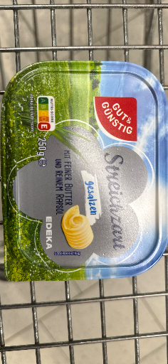 Gut & Günstig is a private label brand under EDEKA, providing a variety of affordable food products including this spreadable fat. Originating in Germany, the brand focuses on offering value without compromising on quality. EDEKA's commitment to local sourcing and production plays a significant role in the brand's strategy. The company's extensive supermarket network ensures widespread availability across Germany, making it a go-to choice for many consumers seeking budget-friendly options.
